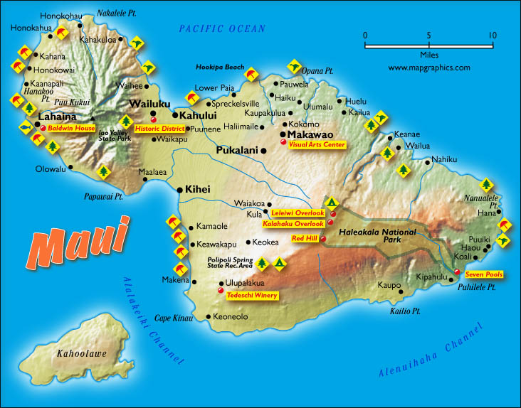 Heute ist fahren, fahren und fahren angesagt. Zuerst nach Lahaina, ein interessantes Städtchen mit vielen kleinen Läden und Restaurants und dem riesigen Banyantree. Alexandra klettert natürlich sofort auf einen Ast. Wir entschliessen uns spontan heute noch Hana anzufahren. Leider ein Fehlentscheid, wie sich später herausstellen wird. Erster Stopp unterwegs an der Hookipa Beach, das Surfermekka von Maui. Wir bestaunen das Geschehen. Die nachfolgende zweistündige und sehr kurvenreiche Anfahrt auf Hana steht nun auf dem Programm. Leider ist vor Ort der Zugang zu den Puohokamoa Wasserfällen gesperrt und so fahren wir weiter. Kurz vor Hana setzen schwere Niederschläge ein und wir müssen nach einem kurzen Blick auf den schwarzen Sand der Hamoa-Beach wieder Rechts-um Kehrt machen. |